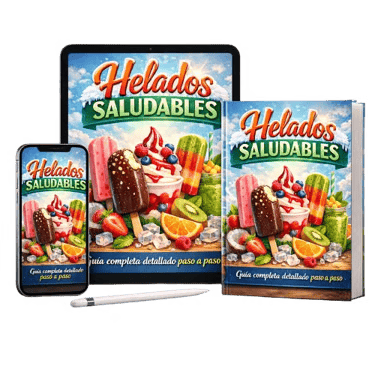 Guía de Helados Saludables diseñada para que aprendas a elaborar distintas opciones de helados y paletas totalmente naturales, libres de azúcar refinada y conservantes.